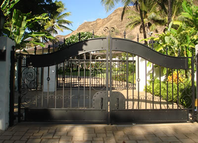 Your gate is the entrance to your property and should reflect your individual style. More importantly your gate helps protect your family. We take pride in ensuring that your gate system is something you appreciate every time you arrive home. Wrought Iron & Gates carries a variety of residential gate systems for all makes and models from very simple to custom tailored solutions. With many types of gates and gate operators in the market today, our qualified and knowledgeable staff will help you navigate through your choices and understand the quality and functionality of the system you are paying for. We believe in educating our customers so that they fully grasp the value of their dollar. With all the changes in technology today, there are many interesting new solutions available to match your individual taste while keeping your home’s perimeter safe and secure. Already have an existing gate you love? We can automate it for you!